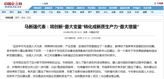 全國人大代表馬新強:“新質生產力關鍵在于創新和產業之間的良性互動,科技成果只有應用到具體產業和產業鏈上來,才能鍛造出優質的產品,更好地推動產業創新、現代化產業體系建立?!?/p>