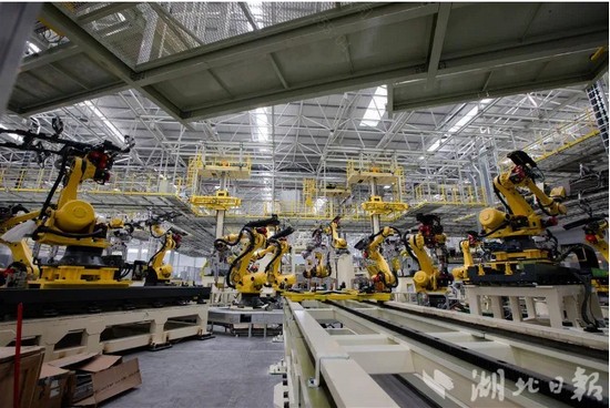 3月18日,湖北日報全媒記者走進東風商用車“車身智能制造升級項目”現場,焊裝車間和裝配車間正進行聯調聯試。